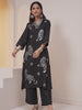 Soft Black Viscose Rayon Floral Print Collar Embroided Straight fit kurta setSoft Black Viscose Rayon Floral Print Collar Embroided Straight fit kurta set
