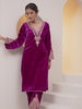 Rich Magenta Velvet Embroidered Straight Kurta Set With Straight Bottom