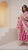 Graceful Cotton Pink Floral Printed Angrakha Kurta With Straight Bottom And Cotton Printed Dupatta