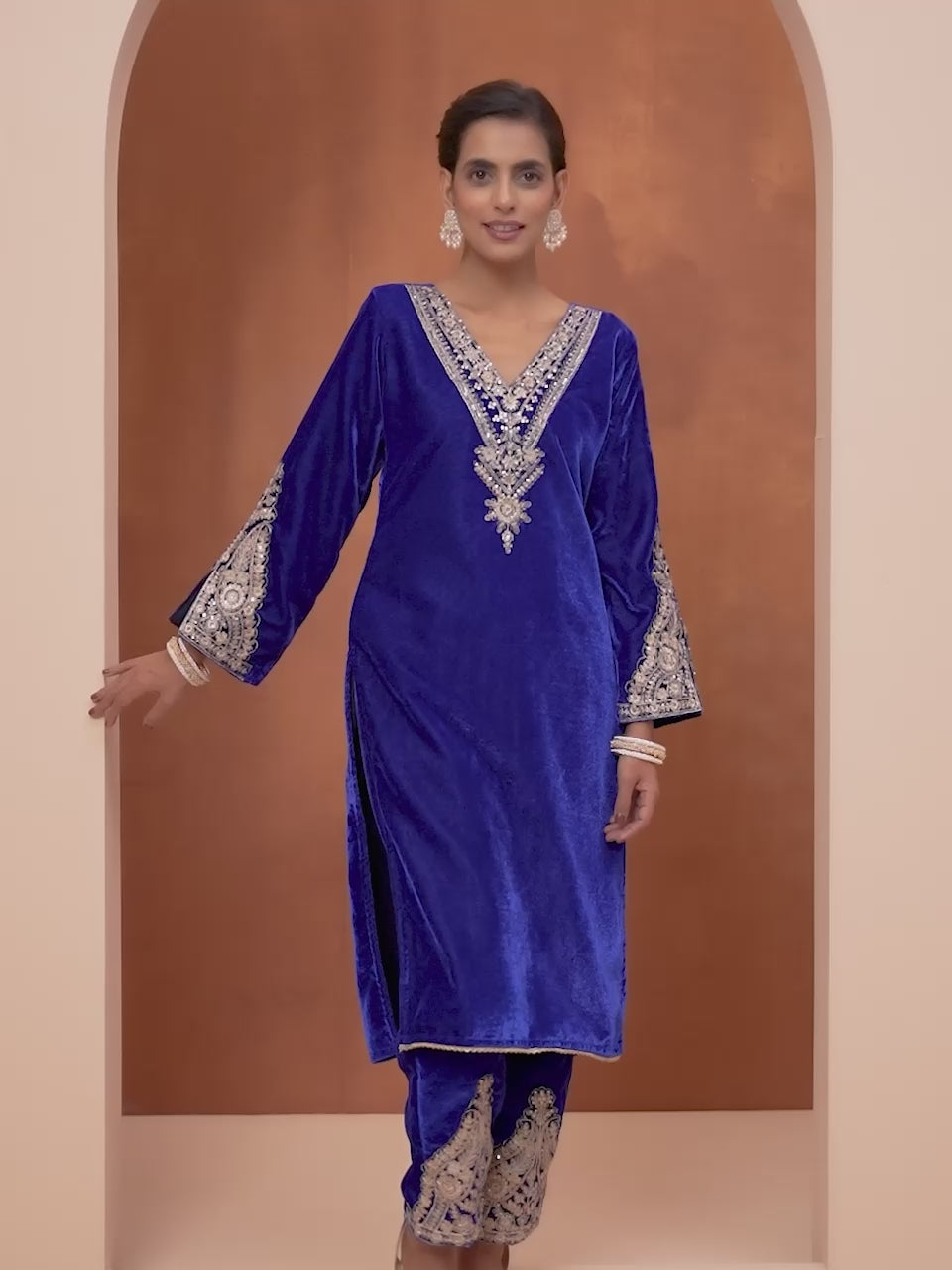 Rich Blue Velvet Embroidered Straight Kurta Set With Straight Bottom Sale price₹ 2,599 Regular price₹ 7,999