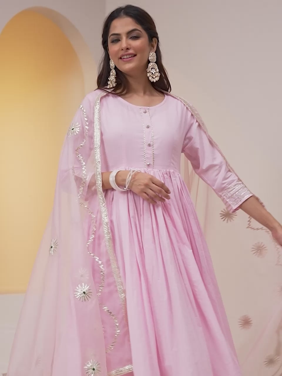 Rich Pink Embroidered Anarkali Kurta Set With Palazzo Bottom And Gotta Patti Dupatta Sale price₹ 2,709 Regular price₹ 8,299