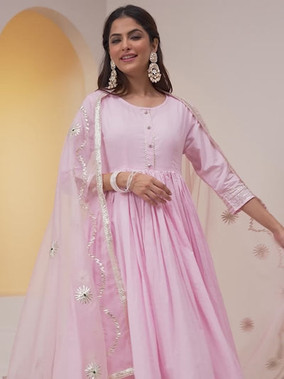 Rich Pink Embroidered Anarkali Kurta Set With Palazzo Bottom And Gotta Patti Dupatta