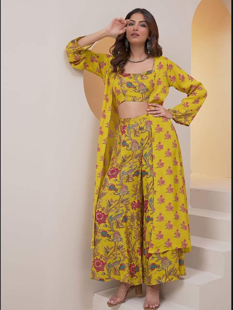 Soft Yellow Polyester Printed Relaxed Fit Co-Ord Set With Palazzo Bottom Sale price₹ 2,369 Regular price₹ 7,299